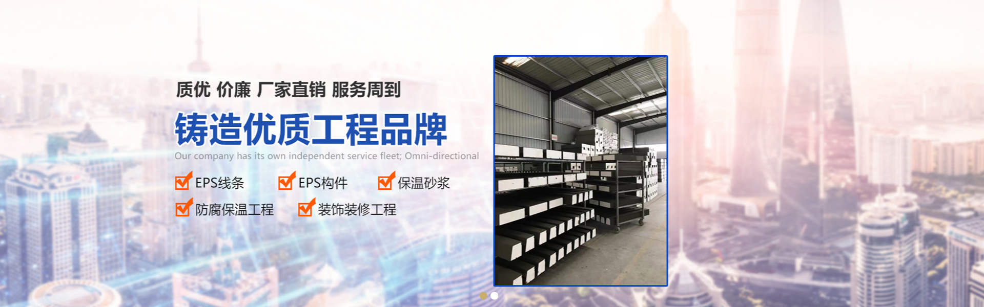 是一家專業(yè)生產(chǎn)各種型號(hào)的EPS線條、GRC線條、保溫砂漿,防腐保溫工程和裝飾裝修工程施工為主的高科技民營(yíng)企業(yè),專業(yè)致力于外墻保溫材料和外墻裝飾線條的生產(chǎn)和施工工程;